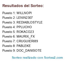 Lista de participantes: LENIN2307, MAURIX_FX, DOC_DANISOTE, WILLNOPI, CRUGUIERI89, PABLEKE, REDIABLOSTYLE, ROKACO23, PPLUCHO.