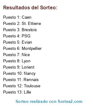 Lista de participantes: Ajaccio, Auxxere, Bordeaux, Brestois, Caen, Dijon, Evian, Lille, Lorient, Lyon, Marsella, Montpellier, Nancy, Nice, PSG, Rennais, Sochaux, St. Ettiene, Toulouse, Valenciennes.