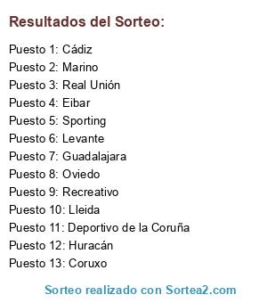 Lista de participantes: Eibar, Cádiz, Coruxo, Deportivo de la Coruña, Lleida, Marino, Levante, Guadalajara, Recreativo, Oviedo, Real Unión, Huracán, Sporting.