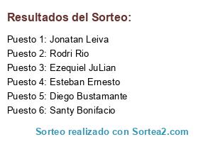 Lista de participantes: Rodri Rio, Santy Bonifacio, Diego Bustamante, Ezequiel JuLian, Jonatan Leiva, Esteban Ernesto.