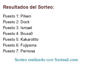 Lista de participantes: Pilsen, Kakarottto, Pernosa, Dock, Bruss0, Fujiyama, Ismael.
