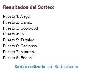 Lista de participantes: Mtorres, Angel, Tartaloo, Canax, Edennil, Ibii, Coolblood, Carlinhos.