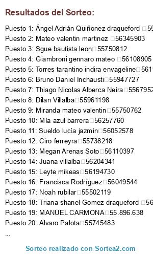 Resultados del sorteo: