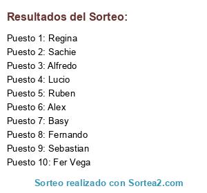 Lista de participantes: Basy, Fer Vega, Regina, Sachie, Lucio, Alex, Alfredo, Ruben, Sebastian, Fernando.