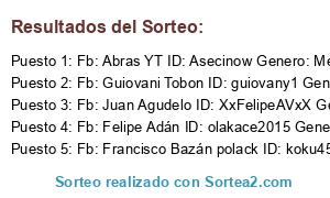 Lista de participantes: Fb: Reynaldo HD ID: rey1005 Genero: Men, Fb: Jhonatan David ID: vinchis Genero: Men, Fb: Juan Pablo Perea ID: xlxnikos1xlx Genero: Men, Fb: Jose Oliveros Weed ID: jhoango Genero: Men, Fb: Julian Riaño ID: XxGneralJefM79xX Genero: Men, Fb: Ubaldo Jose Peralta ID: Maxiubaldo Genero:Men, Fb: JrLarry Larry ID: YoSoyLarryS2 Genero: Men, Fb: Maicol Contreras ID:mamaselsa321 Genero:Men, Fb: Yeremy Cerda ID: octa65 Genero: Men, Fb: Julio Vargas ID: monster1004 Genero: Men, Fb: Azocar Hecmill ID: HellGod Genero: Men, Fb: Emily Vanegas ID:EmilyVanegas Genero:Woman, Fb: Luis David XD ID: xdluizzxd Genero: Men, Fb: Xaby Delgado ID: xaby50 Genero: Men, Fb: Junior Jimenez ID: Juniorxdcf Genero: Woman, Fb: Stewart Quiroz ID: stewartxxx Genero: Men, Fb: Ronnie Perez ID: rpg04 Genero: Men, Fb: Daniel Rua Marin ID: tzdanielzt1 Genero: Men, Fb: Victor Palencia ID: checosnet11 Genero: Men, Fb: Eddy Fer Tenecora ID: jaghsk8 Genero: Men, Fb: Jhonatan Restrepo ID: chotanx Genero: Men, Fb: Jean Alexis ID: XXZkillerZX Genero: Men, Fb: Felipe Adán ID: olakace2015 Genero: Woman, Fb: Sebastian Martinez ID: lunatico108 Genero: Men, Fb: Tinelly Tinelly ID: tinelly Genero: Men, Fb: Ciro Axeso ID: jacaroooo1 Genero: Men, Fb: Striker Aod ID: xXstrikerXx1 Genero: Men, Fb: Juniol MatOs ID: Pasesar214 Genero: Woman, Fb: Leo Cuba ID: leitho9999 Genero: Woman, Fb: Paolo Arancibia Nick: iSrProMac Genero: Men, Fb: Geomer ID: xFBPx Genero: Men, Fb: Jonathan Axeso ID: Jonathanl1 Genero: Men, Fb: Alejandro Barron ID: Colomaster15 Genero: Men, Fb: Josué Molina ID: GreeCloud Genero: Men, Fb: Guiovani Tobon ID: guiovany1 Genero: Men, Fb: Aron Cirilo ID: SexyItachi98 Genero: Men, Fb: RM Monges ID: anakin Genero: Men, Fb: Cris Giovagnoli ID: seji9888 Genero: Men, Fb: Juan Agudelo ID: XxFelipeAVxX Genero: Men, Fb: Simon Pardo ID: simonpardo09 Genero: Men, Fb: Carlos Daniel GC ID: pedror17 Genero: Men, Fb: Edwar Stiven ID: peletus1999 Genero: Woman, Fb: Un Thal Wildher ID: amigofoxx Genero: Men, Fb: SebastianErazo ID:Juansebitas2 Genero:Woman, Fb: Forgaxo Forgaxo ID: Forgaxo Genero: Men, Fb: Romy Torres ID: MasterDj Genero: Men, Fb: Nayeli Rivas ID: ikarlas2 Genero: Woman, Fb: Alberto Llanos ID: jamesxd120 Genero: Woman, Fb: Juan Manuel ID: ZzxlPapolFolxzZ Genero: Wom, Fb: Erik Golden ID: slashz5 Genero: Men, Fb: Månuel Da Cunhå ID: elnequex40 Genero: Wom, Fb: Camilo Arizala ID: zxlkz Genero: Men, Fb: Juan Pazmiño ID: erickerick17 Genero: Men, Fb: Luigi NewHope ID: luizsalazar Genero: Men, Fb: Alejandro Duque ID: criscarp Genero: Men, Fb: mario shagñay ID: hackxxproxx Genero: Men, Fb: Krauser Cod Nick: IINUCLEARII Genero: Men, Fb: Joel Andres Aguirre ID: gorintioo Genero: Men, Fb: Dànílò Òššà Célíš ID: wikdi Genero: Men, Fb: Francisco Bazán polack ID: koku45 Genero: Men, Fb: Jaider David ID: Newstylepipe Genero: Woman, Fb: Cesar Daniel ID: SoyUnPolloS5 Genero: Woman, Fb: Oscar David Alzate ID: oscar3434 Genero: Men, Fb: Rodrigo Coiza ID: Ambitions Genero: Men, Fb: Santi Barroni ID: RipZeel Genero: Men, Fb: Wonder Akqelee ID: Wonder24 Genero: Men, Fb: Camilo Miramà ID: FeooTuPapa Genero: Men, Fb: Abras YT ID: Asecinow Genero: Men, Fb: Hermann S Mautz ID: memijo Genero: Men, Fb:Juan Esteban ID:iGzProFheCyGuTTyS4 Gen:Men, Fb: Wilson Andres ID: hidanwolf22 Genero: Men, Fb: Brândôn Gârzôn ID: Carlospro852 Genero: Men, Fb: Crizz Dê Sâracoto ID: lokitotkxd12 Genero: Men, Fb: Hola Soy Mikow ID: ronniii Genero: Men.