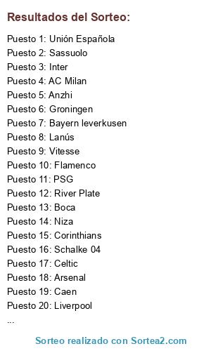Resultados del sorteo: