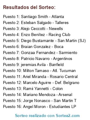 Resultados del sorteo: