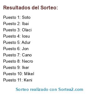 Lista de participantes: Ibai, Mikel, Jon, Iker, Olaci, Necro, Soto, Iosu, Adur, Keni, Cano.