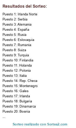 Lista de participantes: Austria, Bélgica, Bosnia, Bulgaria, Croacia, Rep. Checa, Dinamarca, Inglaterra, Finlandia, Francia, Alemania, Grecia, Hungria, Irlanda, Italia, Montenegro, Holanda, Irlanda Norte, Noruega, Polonia, Portugal, Rumania, Rusia, Escocia, Serbia, Eslovaquia, España, Suecia, Suiza, Turquia, Ucrania, Gales.