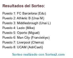 Lista de participantes: Athletic B (Unai M), Middlesbrough (Unai L), Lazio (Mike), Man City (Franciskiyo), Liverpool (Chema), FC Barcelona (Edu), UCAM (AdriCasti), Oporto (Miguel).