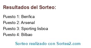 Lista de participantes: Sporting lisboa, Arsenal, Bilbao, Benfica.