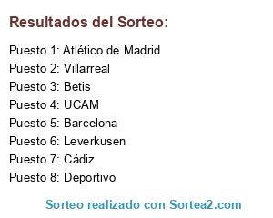Lista de participantes: Atlético de Madrid, Barcelona, Villarreal, Leverkusen, Cádiz, Betis, UCAM, Deportivo.