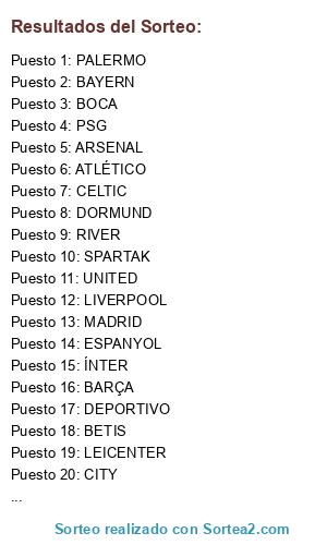 Resultados del sorteo: