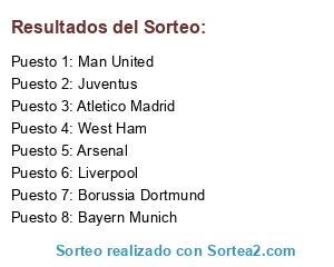 Lista de participantes: Arsenal, Atletico Madrid, Bayern Munich, Borussia Dortmund, Juventus, Liverpool, Man United, West Ham.