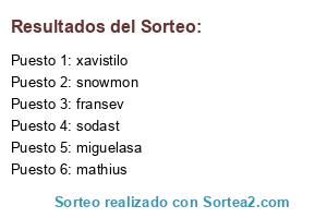 Lista de participantes: snowmon, sodast, xavistilo, miguelasa, fransev, mathius.