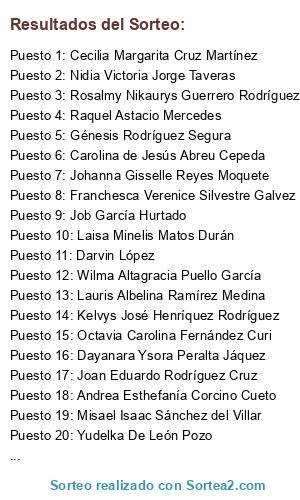 Resultados del sorteo: