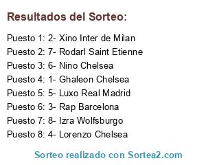 Lista de participantes: 1- Ghaleon Chelsea, 2- Xino Inter de Milan, 3- Rap Barcelona, 4- Lorenzo Chelsea, 5- Luxo Real Madrid, 6- Nino Chelsea, 7- Rodarl Saint Etienne, 8- Izra Wolfsburgo.