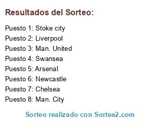 Lista de participantes: Man. United, Man. City, Stoke city, Chelsea, Swansea, Liverpool, Newcastle, Arsenal.