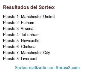 Lista de participantes: Manchester United, Newcastle, Fulham, Manchester City, Liverpool, Arsenal, Tottenham, Chelsea.