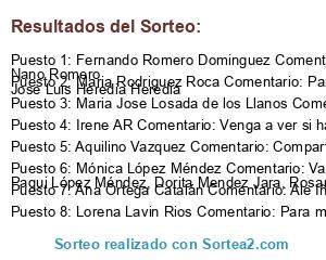 - Ganador 1: Fernando Romero Dominguez Comentario: Raquel Romero Martinez Nano Romero Jose Luis Heredia Heredia