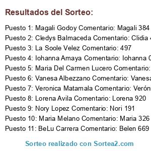 Lista de participantes: Sorteo realizado entre 542 participantes..