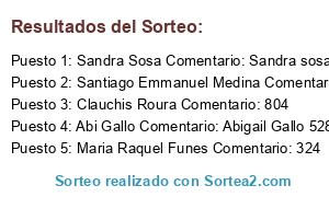 - Ganador 1: Sandra Sosa Comentario: Sandra sosa 520