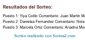 - Ganador 3: Marcela Ortiz Comentario: Ariadna Morizzio Laura Mariela Azar