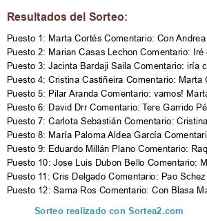 - Ganador 5: Pilar Aranda Comentario: vamos! Marta Aranda