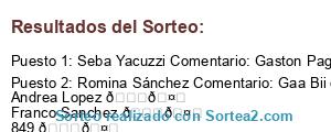 - Ganador 2: Romina Sánchez Comentario: Gaa Bii 🍀🤞 Andrea Lopez 🍀🤞 Franco Sanchez 🍀🤞 849 🍀🤞