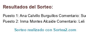 - Ganador: Araceli Gallego Comentario: Me encantaria probarlo pero nunca m toca nada.Araceli Carrera y Araceli Navarro