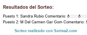 - Ganador: Sandra Rubio Comentario: 🙈🙈🙈me fusta todooo