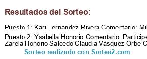- Ganador 1: Kari Fernandez Rivera Comentario: Mila Fernandez Rivera Silvia Rivera Avilés YC BC haber si esta vez ganó 🤭🤭