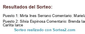 - Ganador: Mirta Ines Serrano Comentario: Mariela serrano y Gabriela furios