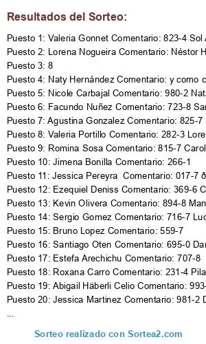 - Ganador 7: Valeria Portillo Comentario: 282-3 Lore Mansilla,Soledad Perez Aldaz,Diana Fernandez 😊