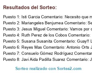 - Ganador 1: Isti Garcia Comentario: Necesito que me toque!!!! Celia Agüera Tony Sánchez Alcolea Annie GC
