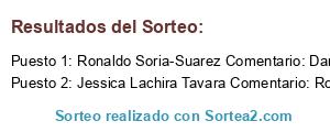 - Ganador 2: Jessica Lachira Tavara Comentario: Roland Vilela Cruz, Roland Vilela Lachira.