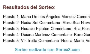 - Ganador: Maria De Los Ángeles Mendez Comentario: Pame Mendez Florencia Mendez Melina Luque compartan así tenemos lugar para el Baby😊😉