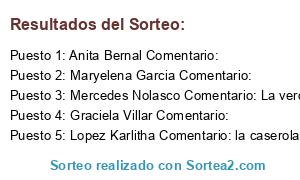 - Ganador 5: Lopez Karlitha Comentario: la caserola para guisos se esta pelando por.dentro no tiene ni medio año y trato.de.cuidarla..