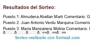 - Ganador 1: Almudena Abellan Marti Comentario: Gines Jimenez Martinez Jordi Abellan Marti Paco Abellan Ponce