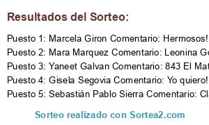 - Ganador 1: Marcela Giron Comentario: Hermosos!!!.. Jazmin Giordano