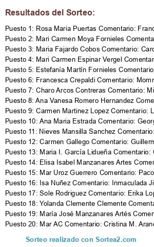- Ganador 1: Rosa Maria Puertas Comentario: Francisco Jesus Hernandez Zamora