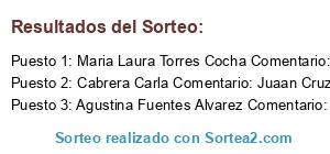 - Ganador 1: Maricel Roldan Comentario: Karim Nacuzi Camila Romero Hahan 265