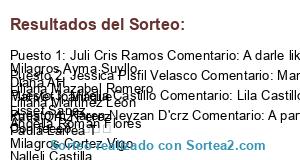 - Ganador 2: Jessica Pisfil Velasco Comentario: Mamis a participar Liliana Mazabel Romero Liliana Martinez Leon Katia Ortiz Perez Paula Larrea T Milagros Cortez Vigo