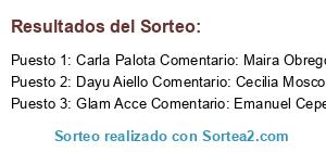 - Ganador 1: Carla Palota Comentario: Maira Obregon Rocyy Acevedo