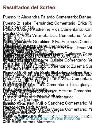- Ganador 15: Deisy Trujillo Sanchez Comentario: Monica Meneses Anaya Hector Jose Ortiz Anaya Madeley Mendoza Gonzales Kariitoh Bejar Lazarte Arana Sari Estrella Jme