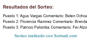 - Ganador 3: Rocio Robles Comentario: Sed Cecilia Aquino Agus Armella Araceli Milena Vero Lozano Nahir Rios