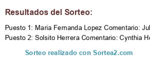 - Ganador 1: Carmen Perez Comentario: Carlos DavidEstevez Mario Guillermo Bravo 534