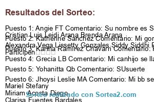 - Suplente 5: Jhoysi Leslie MA Comentario: Mi bb se llama Valentino❤ Mariel Stefany Miriam Acosta Diego Clarisa Fuentes Bardales