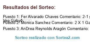 - Ganador 1: Fer Alvarado Chaves Comentario: 2-1 ganando San Carlos Vea Gaby😁