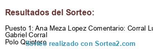 - Ganador: Ana Meza Lopez Comentario: Corral Luis... papá Gabriel Corral Polo Quintero